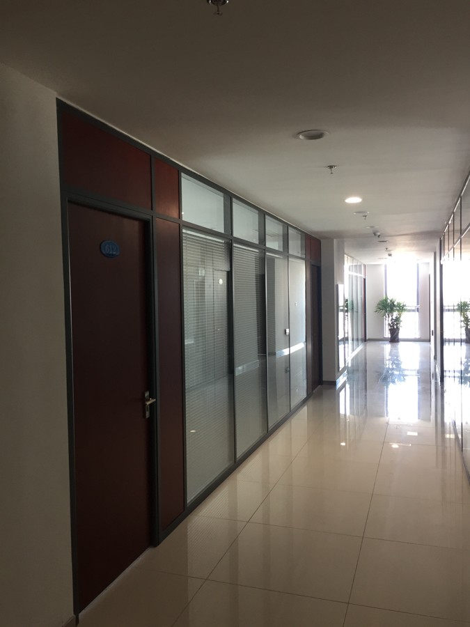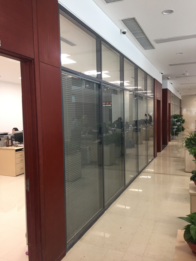創(chuàng)智新區(qū)K樓市民中心項目:HX-85款靜電噴涂深灰色,雙層6mm鋼化玻璃內(nèi)置百葉隔斷,隔斷配套實木復(fù)合門扇。項目面積3200平方。