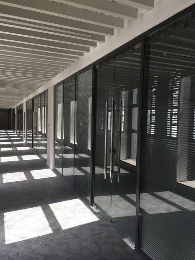 創(chuàng)智新區(qū)D樓千人創(chuàng)業(yè)計劃項目:HX-85款氟碳噴涂深灰色,雙層6mm鋼化玻璃內(nèi)置百葉隔斷,隔斷配套12mm鋼化玻璃門扇。項目面積2800平方。