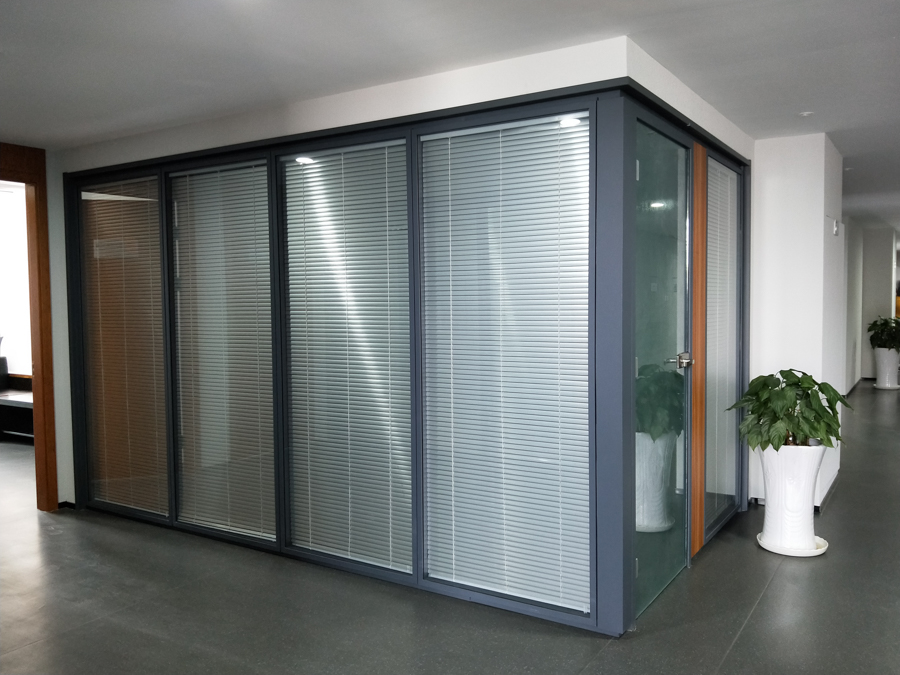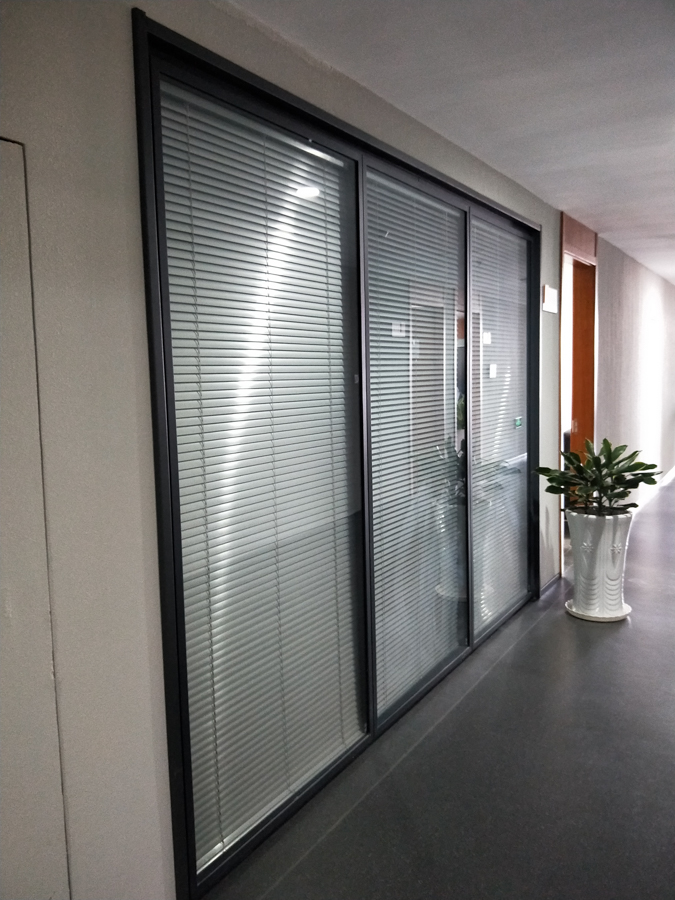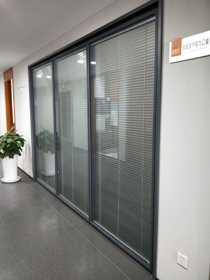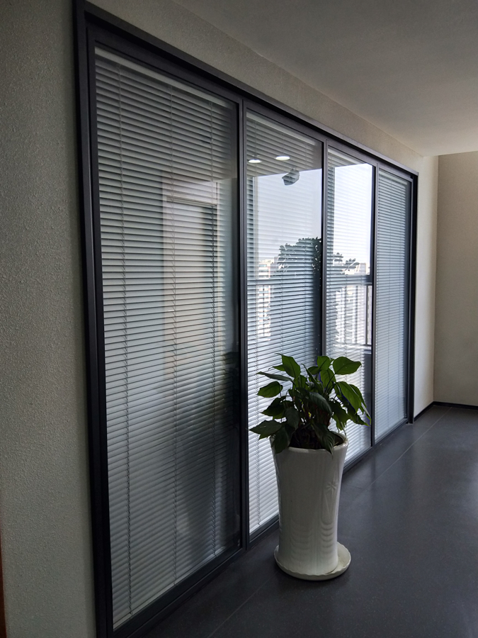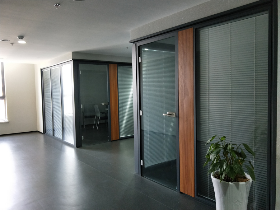 青島城投金融控股集團(tuán)項(xiàng)目:HX-85款靜電噴涂灰色,雙層6mm鋼化玻璃內(nèi)置百葉隔斷,隔斷配套實(shí)木復(fù)合門(mén)扇。電梯廳自動(dòng)門(mén)系統(tǒng)采用松下自動(dòng)門(mén)及門(mén)禁系統(tǒng)。