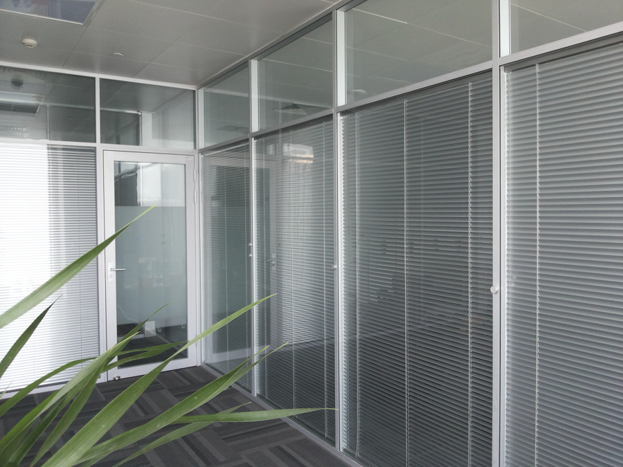 燕歸堂7080廣場項目:HX-85款單層8mm、雙層5mm鋼化玻璃隔斷,堅美氧化銀色隔斷型材,隔斷配套6mm鋼化玻璃有框玻璃門,12mm地彈簧玻璃門,兩棟寫字樓整體裝修,隔斷、玻璃門總面積4500平方。
